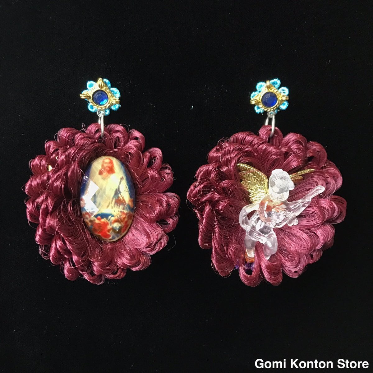 『文化屋雑貨店の昔の人毛パーツを大切に使いました。ジーザスカボションと透明の天使が耳元で咲き誇ります。軽量です。』