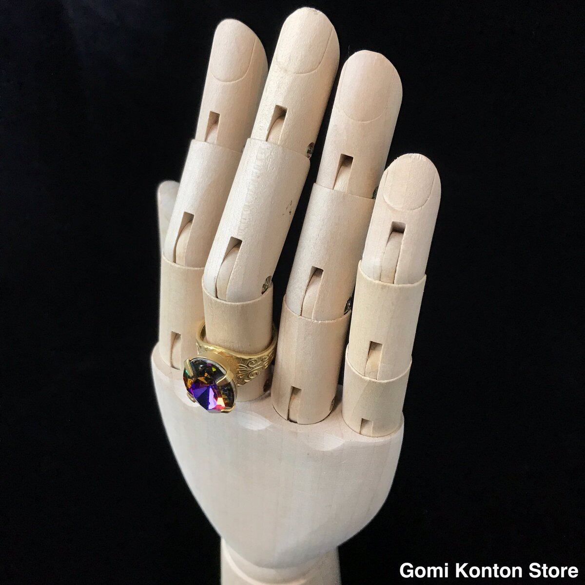 『下町で丁寧に作られた懐かしくも美しいイミテーションダイヤリングです。イミテーションですがダイヤ部分は硝子なので、煌めきと重みがあります。指にフィットする形です。指輪の帯のクラシカルな柄が綺麗です。』