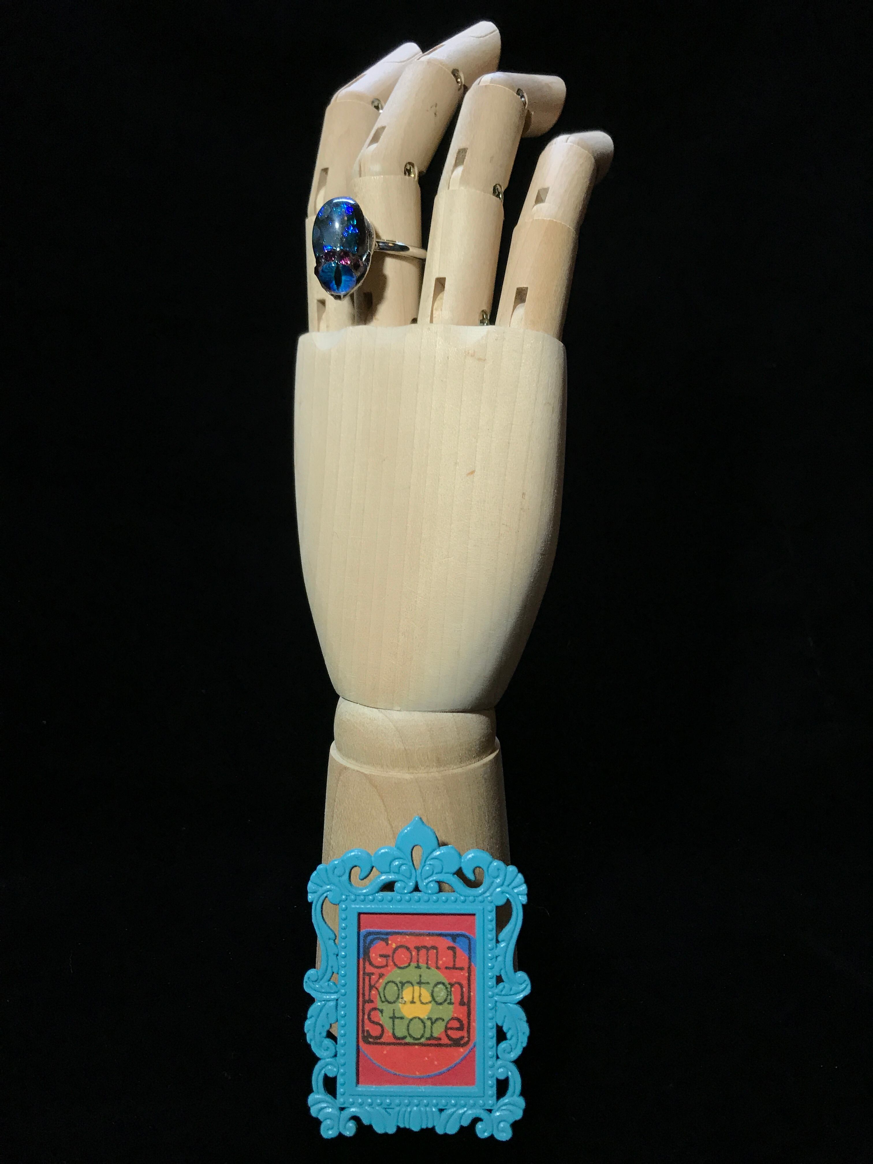 『グリッターの煌めきが美しい青い蕾の瞳リングです。』