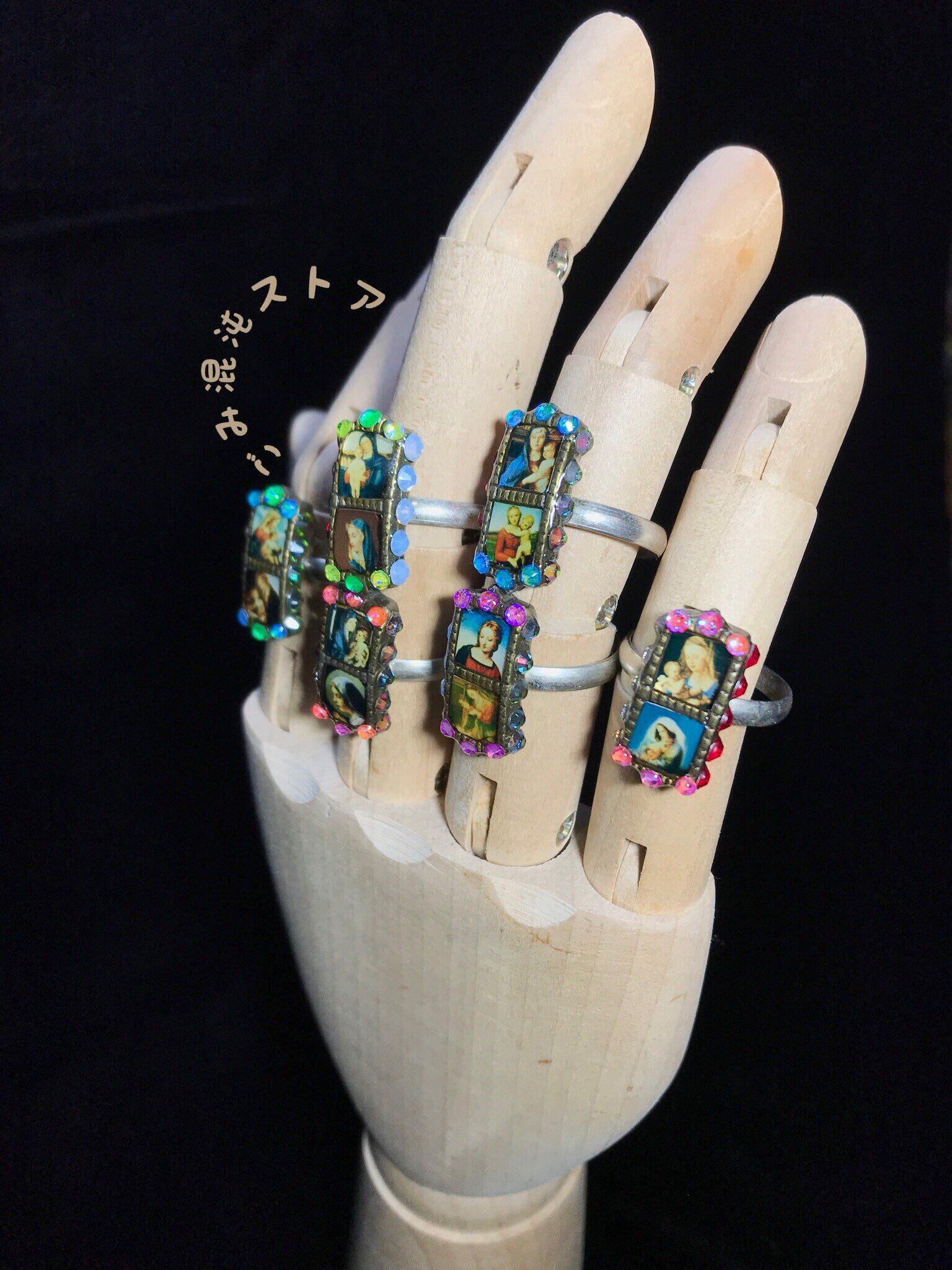 『カラフルなラインストーンがキッチュかつ荘厳な絵が美しいリングです。重ね付けするとおしゃれです♪』